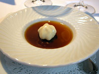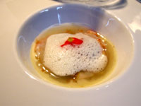 カレー味のシーフードヴィシソワーズとシーフード風味のゼラチン