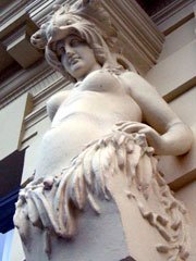 建物の飾りの下の女性像、ふくよかな胸部に触ってみたくなりませんか?