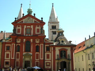 赤色が印象的な聖イジー教会。920年に完成し、その後火事で焼けて、