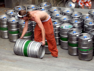 右下の写真は、野外コンサートの会場にビールを運んでいる人々です。