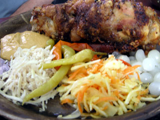 ランチにフライドチキンを注文したら(右上)、どどぉ〜っと出てきました。