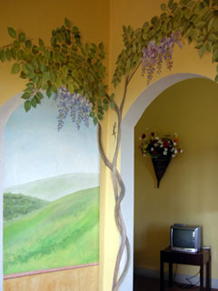 扉を開けて入ってみると、部屋の中にもトスカーナの風景が。