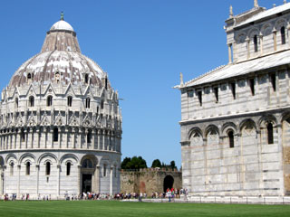 右下の写真の丸いのが洗礼堂で、四角いのが大聖堂です。