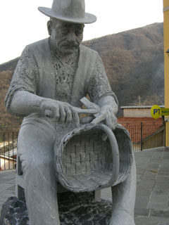 手で編んで作った籠が名産だそうで、こんな銅像がありました。
