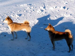 降りてくるスキーヤー達を見ている大輔と姫です。