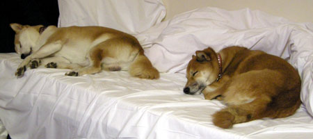 大輔&姫、早速、ソファーベッドの寝心地を試しています。